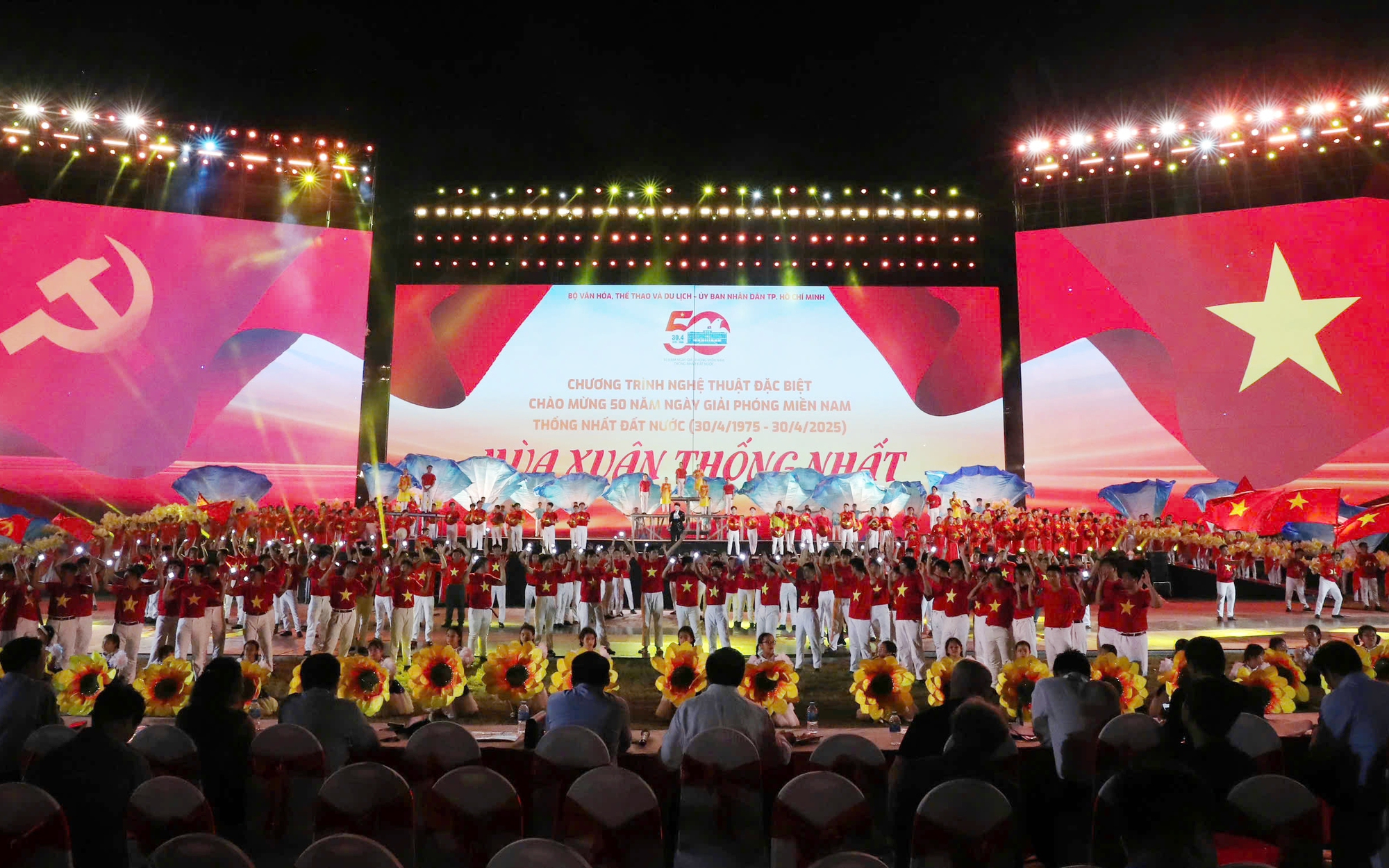Thực hiện Đề án Tổng thể các hoạt động kỷ niệm 50 năm Ngày Giải phóng miền Nam thống nhất đất nước (Quyết định số 01-QĐ/BCĐTW ngày 19/3/2025 của Ban Chỉ đạo Trung ương) và các kết luận của Ban Chỉ đạo Trung ương (Thông báo số 04-TB/BCĐTW ngày 23/8/2024; Thông báo số 05-TB/BCĐTW ngày 11/12/2024 và Thông báo số 06-TB/BCĐTW ngày 07/3/2025) Bộ Văn hóa, Thể thao và Du lịch chủ trì, phối hợp với Ủy ban Nhân dân Thành phố Hồ Chí Minh và các đơn vị có liên quan tổ chức Chương trình nghệ thuật đặc biệt "Mùa xuân thống nhất" chào mừng Kỷ niệm 50 năm Ngày Giải phóng miền Nam, thống nhất đất nước (30/4/1975 - 30/4/2025).